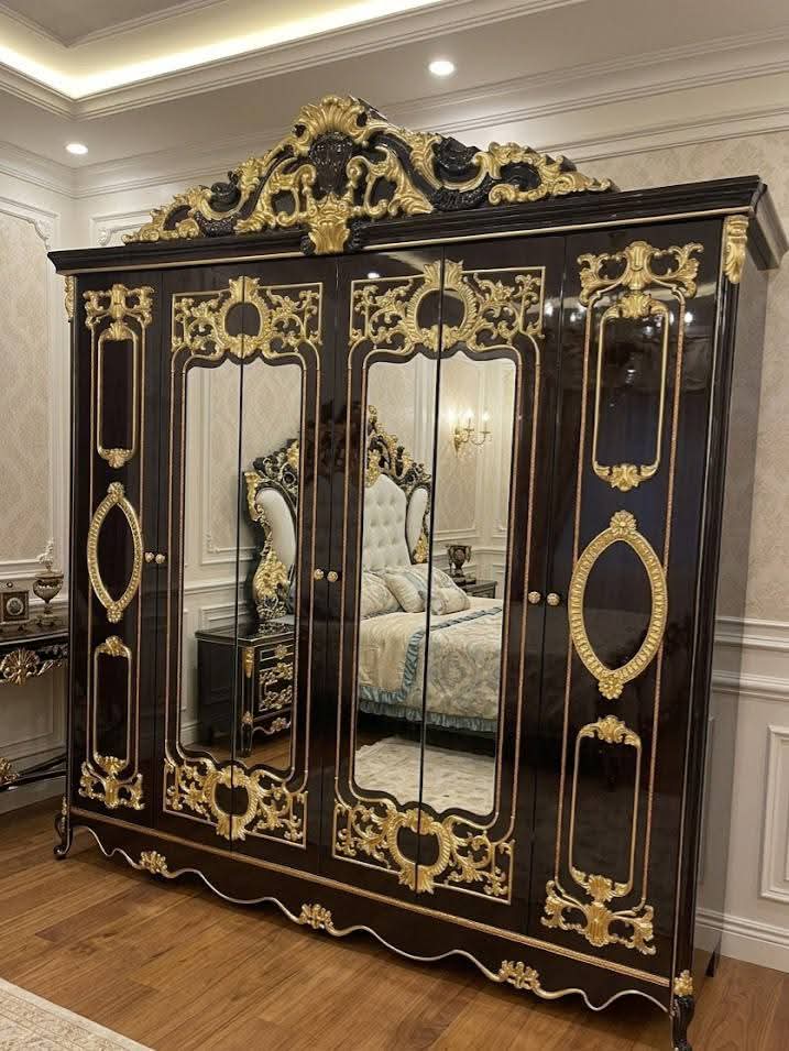 Dulapul masiv: Spațios, oglinzi integrate și cornișă ornamentată generos.