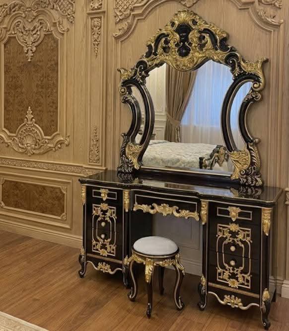 Masa de toaletă: Design sofisticat, dotată cu o oglindă spectaculoasă și spații de depozitare elegante.